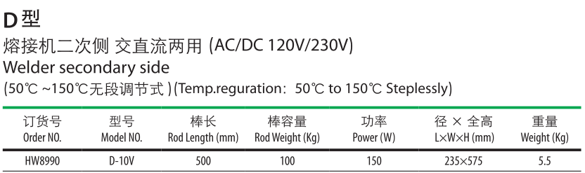 D型熔接機(jī)二次側(cè)交直流兩用。